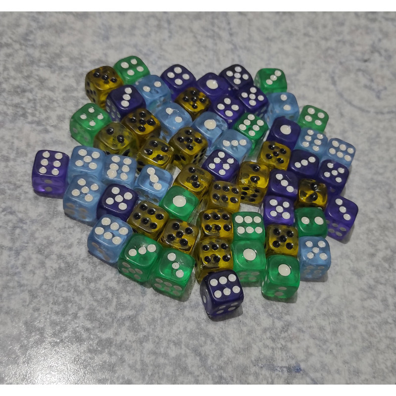 ده جفت ( 20 عدد ) تاس شفاف با ابعاد 10 میلیمتر می باشد. با توجه به رنگهای جذاب و ابعاد کوچک تاسها؛ در حین بازی مراقب بلعیده شدن توسط کودکان ( بویژه کودکان زیر سه سال ) باشید. نکته مهم : رنگ بندی تاس ها متنوع می باشد.